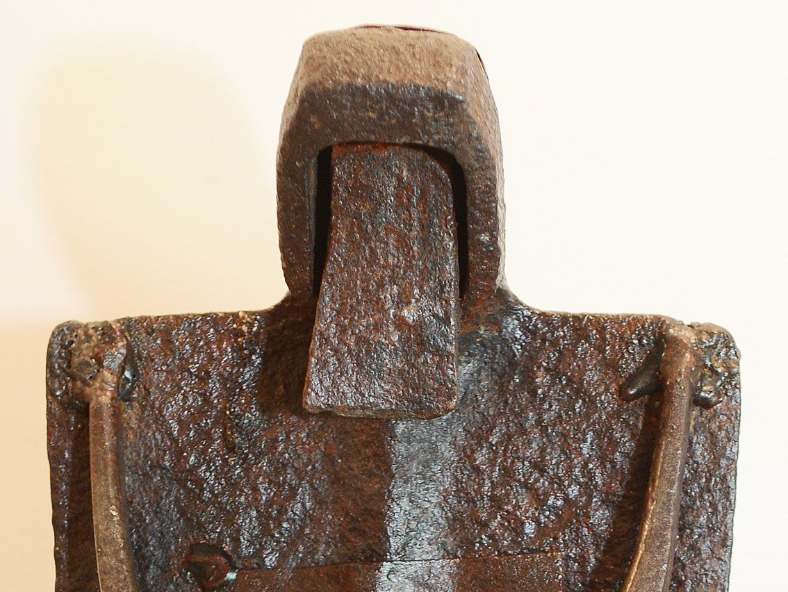Its long and populated beard remembers the one of a templar, monk-warrior of the Middle Age that the pilgrims that traveled to the Holy Land defended. The garment of the right part could be a mesh quota, as well as the piece that leads diagonally, which also gives it a warrior air. Finally, the hoe in the form of a later layer, the soul of the piece, is the one that confers its dignity and strength.