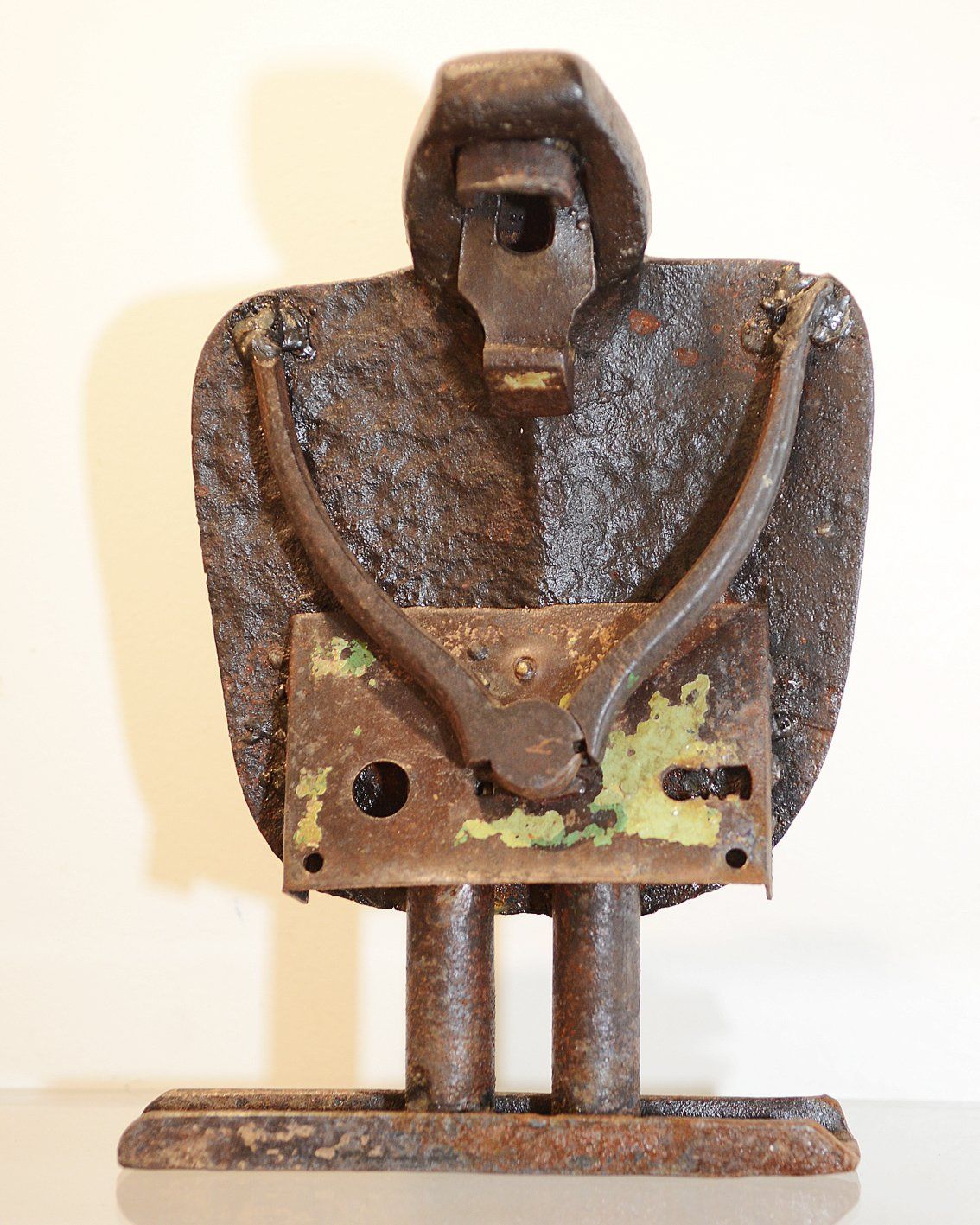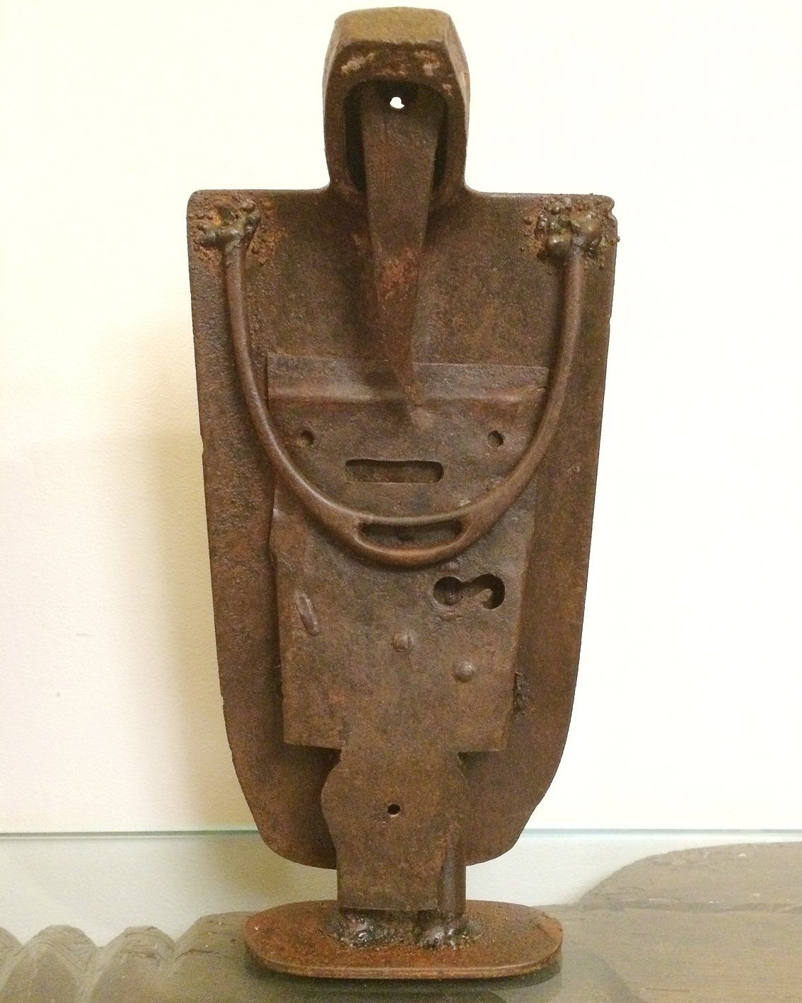 Iron, wood, ceramics, glass and paper collage
